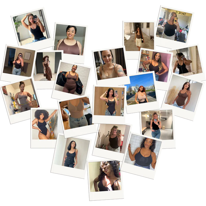 Nos bodys gainants sont conçus pour épouser chaque silhouette, du XS au 4XL, sans comprimer ni uniformiser.